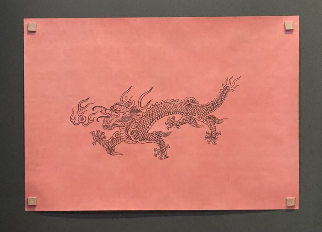 전시의 마지막 부분에서 만난 붉은 종이 위 용 그림은 강렬한 인상을 남긴다. 상상의 동물인 용은 왕의 권위와 수호의 상징이다.